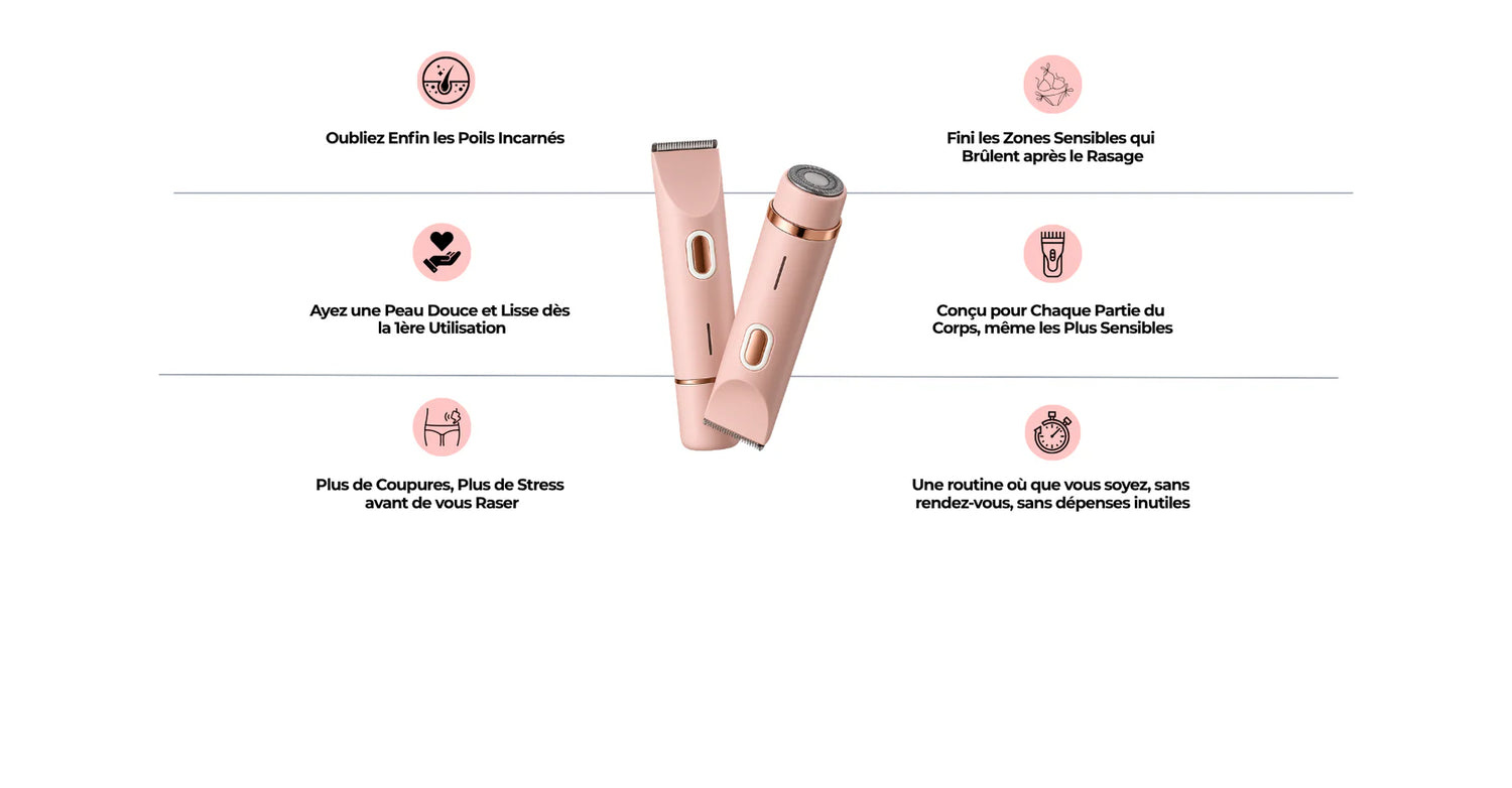 Oui, Velys est spécialement conçu pour être doux sur la peau, même sur les zones les plus sensibles comme le maillot ou les aisselles. Grâce à sa double tête tondeuse/rasoir, il offre une expérience sans irritations ni rougeurs