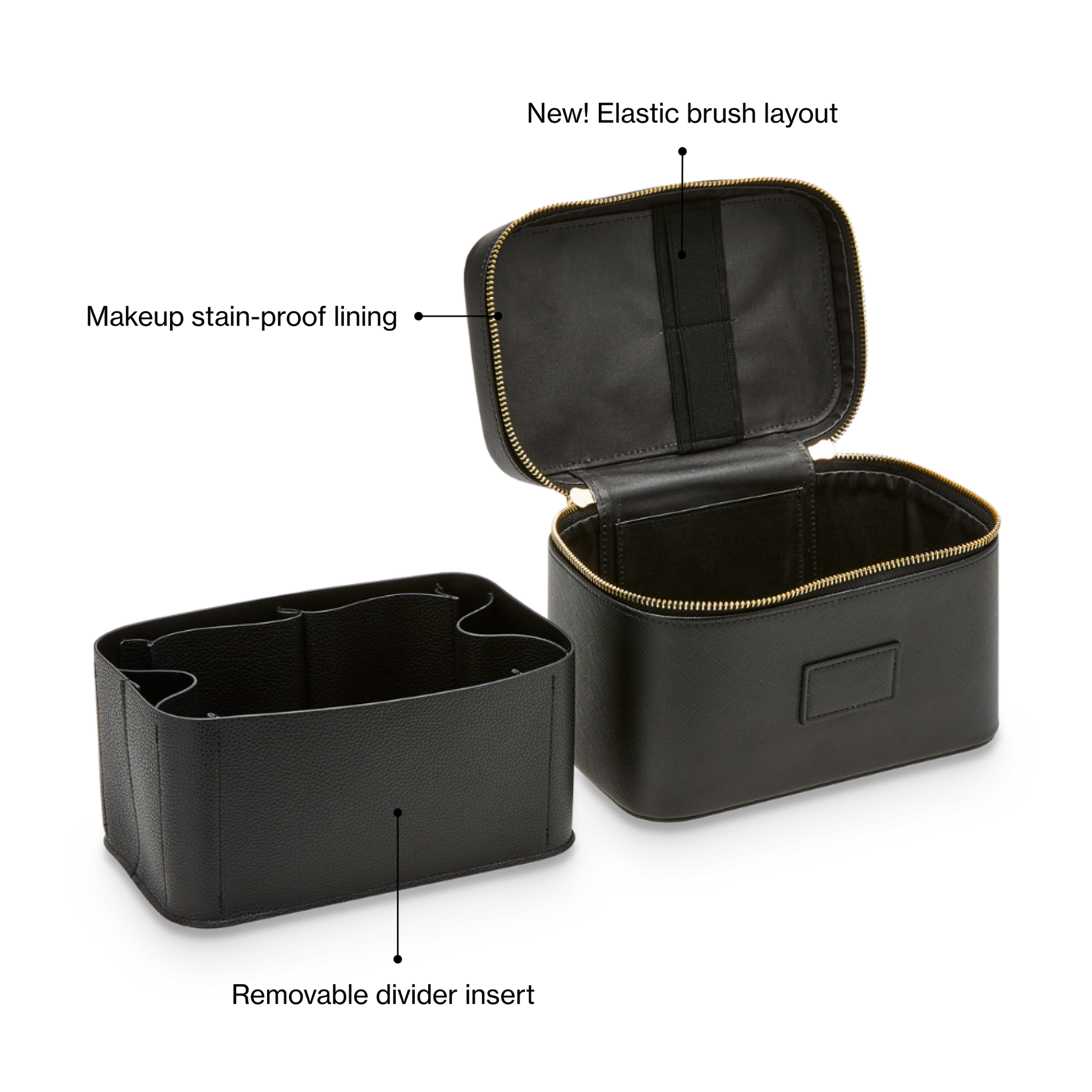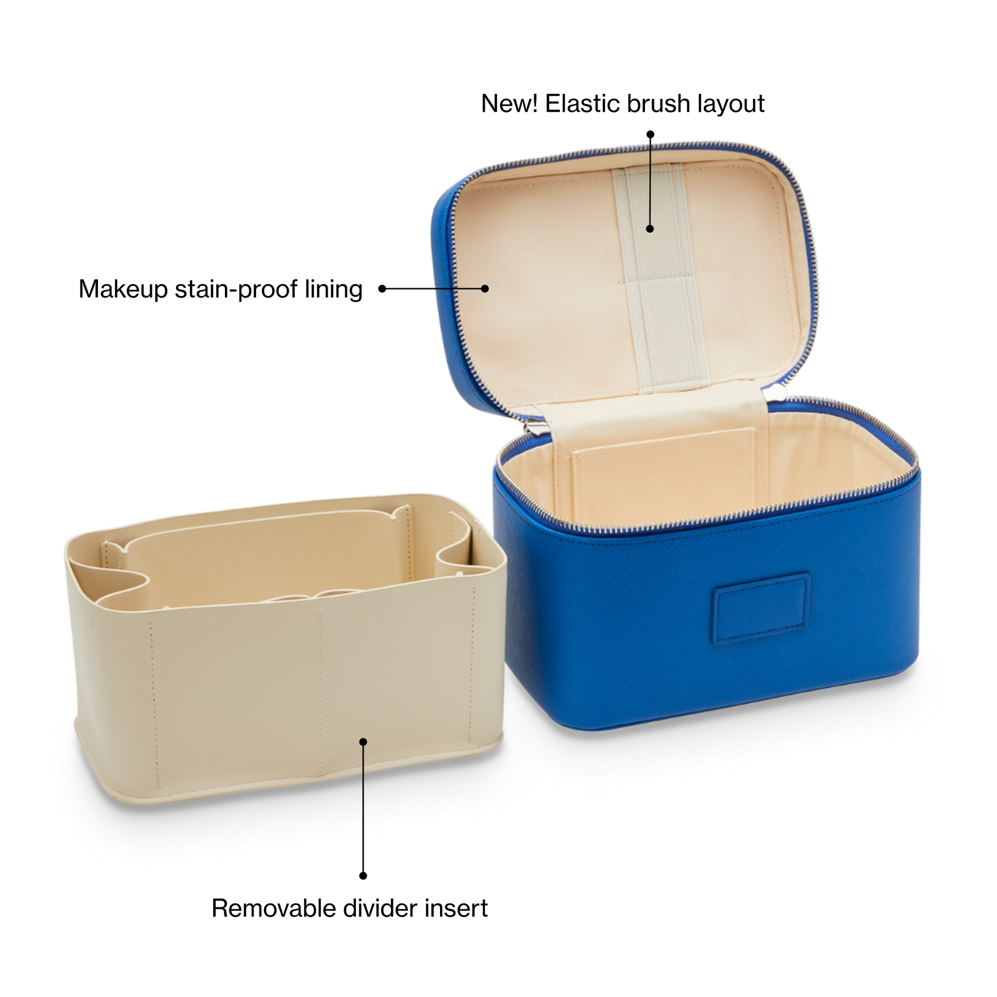Meet the Mini Vanity Case: A carry-on friendly cosmetic or toiletry bag that fits more than the name suggests. With a removable divider insert and plenty of pockets for makeup, skincare or toiletries, you'll never want to head away without this beauty essential.