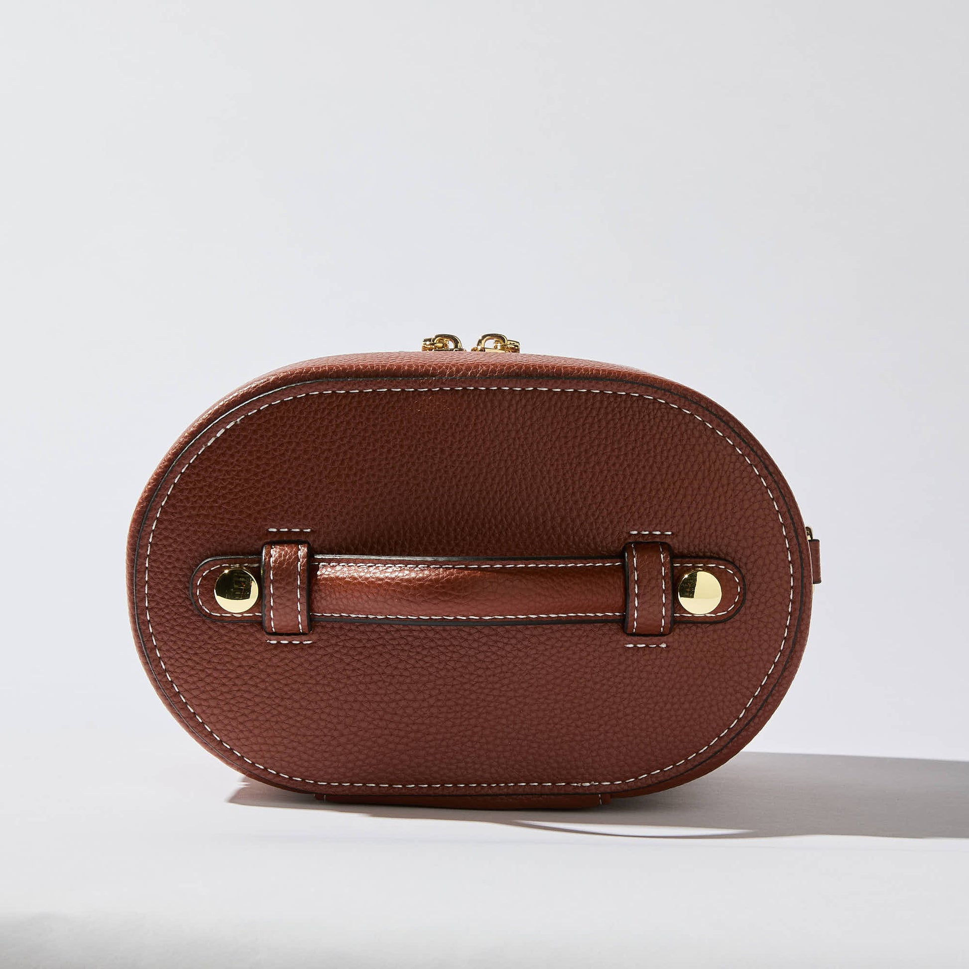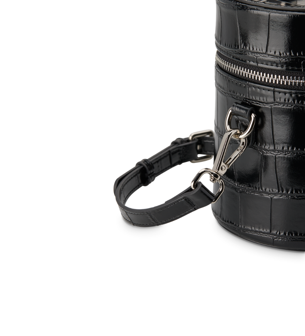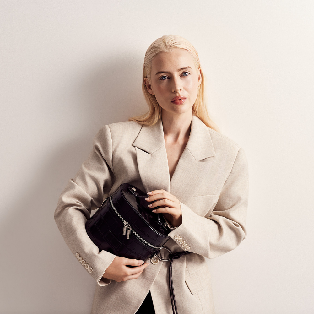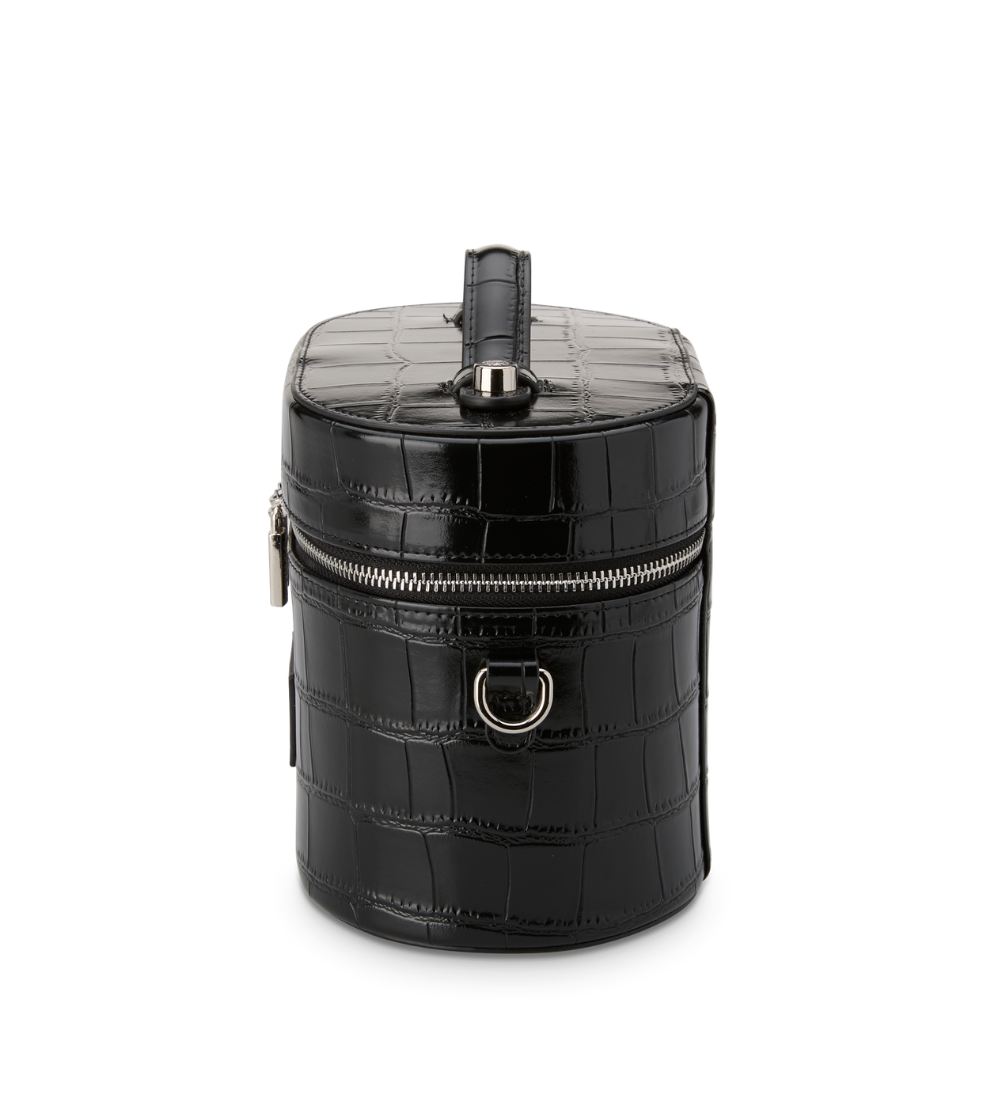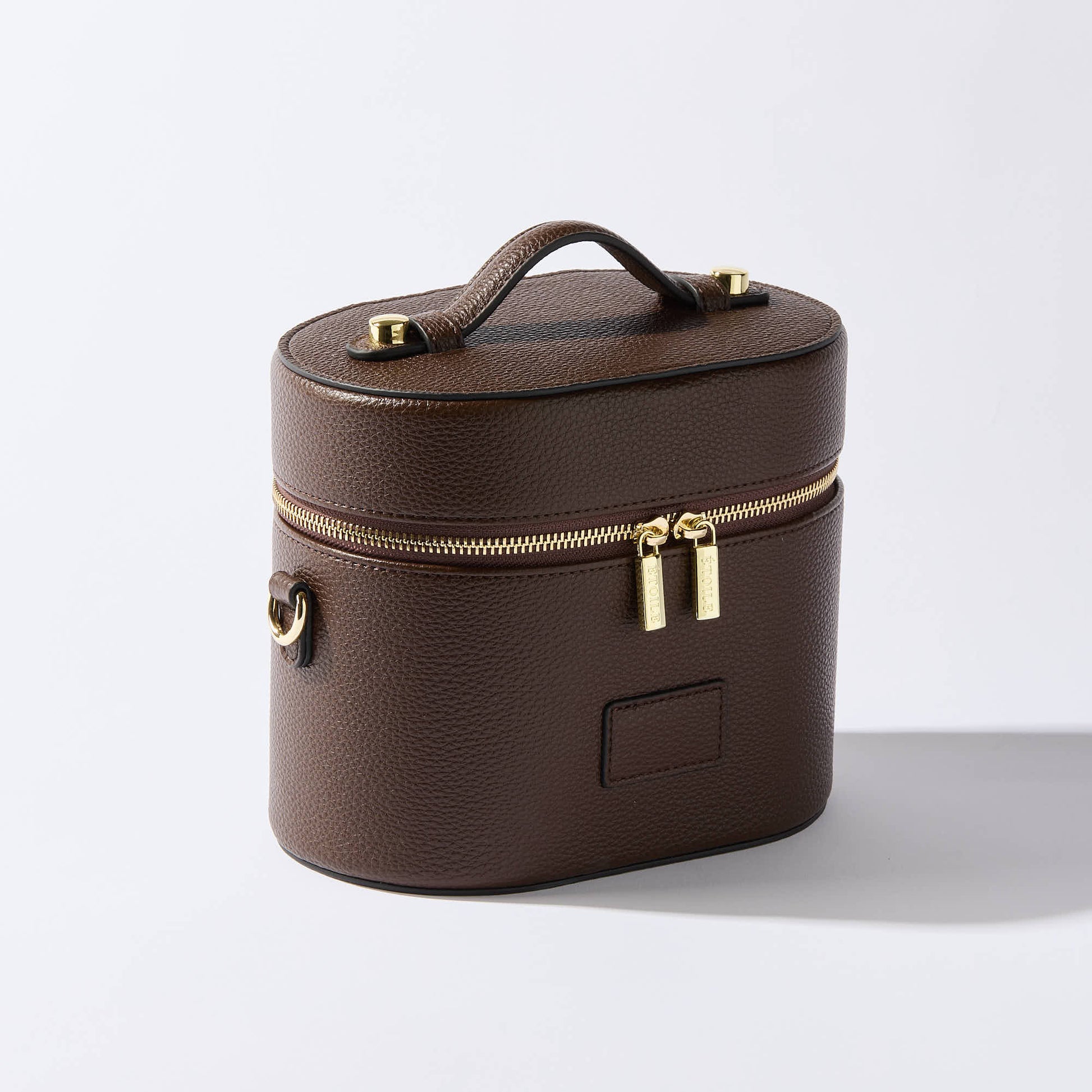Elevate your routine with our Oval Toiletry Case, featuring a fresh shape with more curves, added height, and an extra shoulder strap, tailored to accommodate taller products.